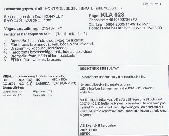 Vad som oxå är lite anmärkningsvärt är att när jag besiktigade förra året så sa killen att bilen ser helt OK ut med tanke på ålder/mil och jag fick inte ens en "bra att veta".