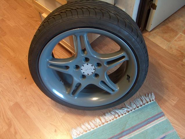 Här kommer bilden på nya lackade och riktade fälgar.