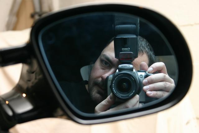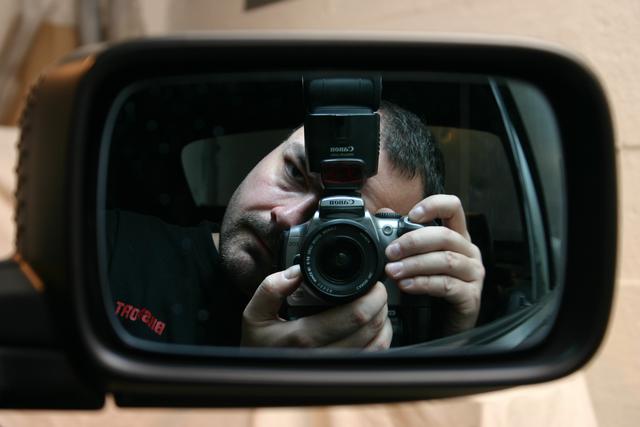 Leta efter min svarta cabbe eller en snubbe med svart tröja som det står fotograf på. :-)