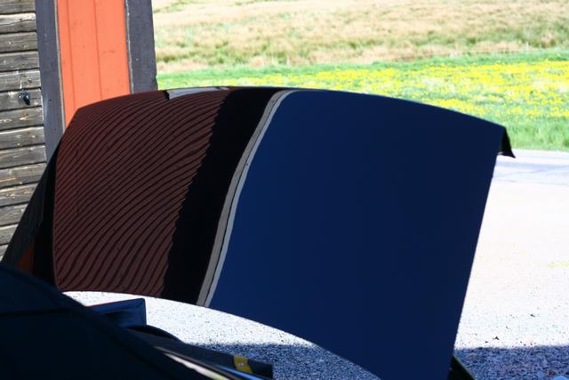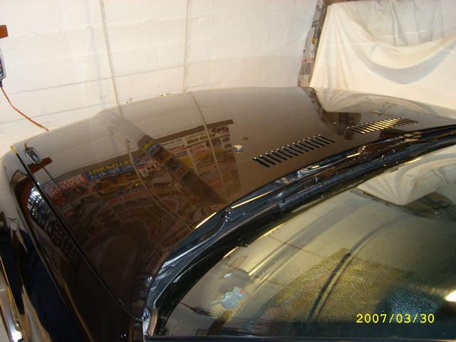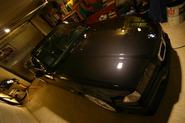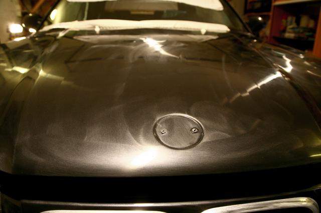 Det är SÅÅÅ skönt att ha två bilar och slippa "jag måste vara klar i morgon"! Jag har inte kört en meter med cabben sedan i söndags utan hon står väl intejpad i garaget (skydd för trissan) och så har jag kört lite polering då och lite då. För närvarande är huven och bakluckan klar och jag bestämde mig för följande.