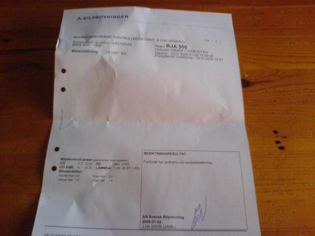Blankt papper på 328:an. Perfekta bromsvärden. Skönt. Kontrollerade lampor och sådant i förmiddags, enda som inte fungerade var vänster sidoblinkers, så det blev en repa till macken för nya glödlampor.