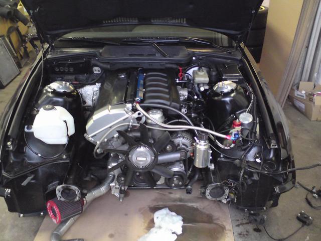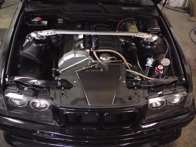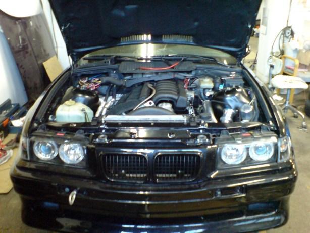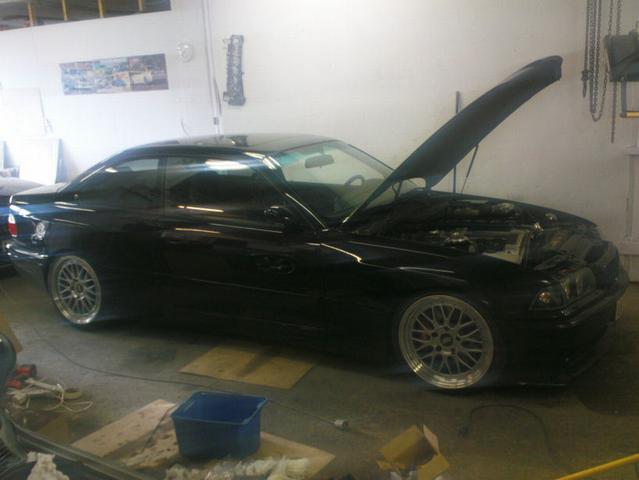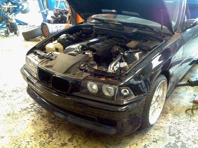 Har monterat på fronten nu och var även till BMW i Avesta idag och hämtade lite reservdelar jag som jag beställt. Bl a nya gasdämpare till motorhuven. De som satt på var helt slut och det finns inget jobbigare än att mecka när inte huven vill vara där man själv vill. =)