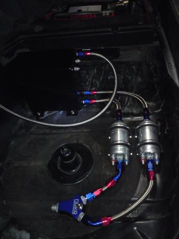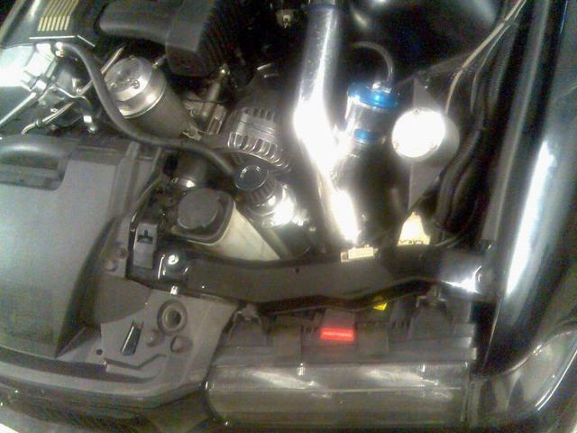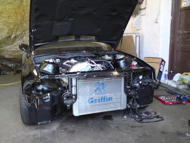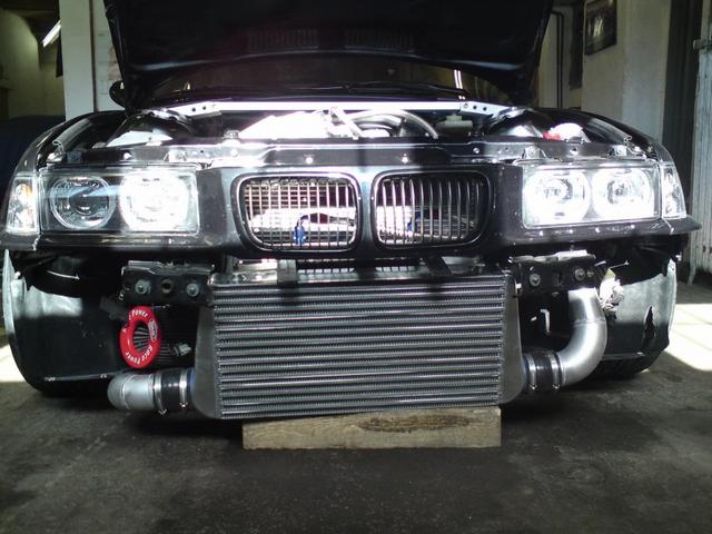 Sedan hade vi lite problem med att insugstemperaturen blev för hög. Så vi fick plocka bort frontspoilern för bättre kylning. Problemet är att min intercooler är lite liten pga frontspoilern inte har någon stor öppning för luft. Och jag är inte speciellt sugen på att såga upp min ACS original kolfiberspoiler, så det blir till att byta till större ic.