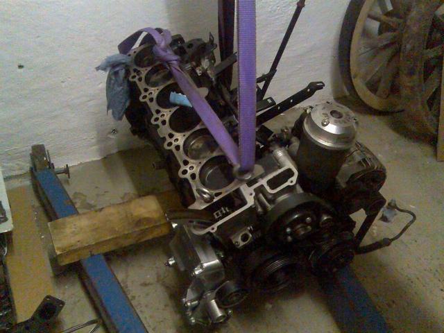Idag har jag och min personliga mekaniker Kecke lyft ur den gamla motorn. Nästa vecka ska vi plocka över el mm från den gamla till denna nya då det visade sig att det var Siemens tändsystem på denna och jag hade Bosch.