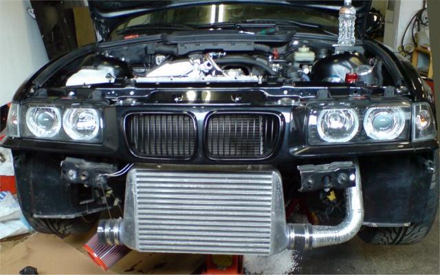 Tog en bild när intercoolern är på plats. Tyvärr så syns det inte så mycket, så jag bifogar en bild på ic:n från PPF´s hemsida också.
