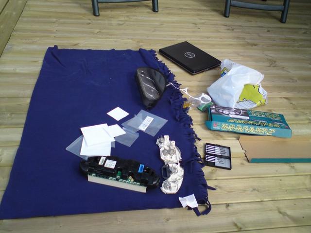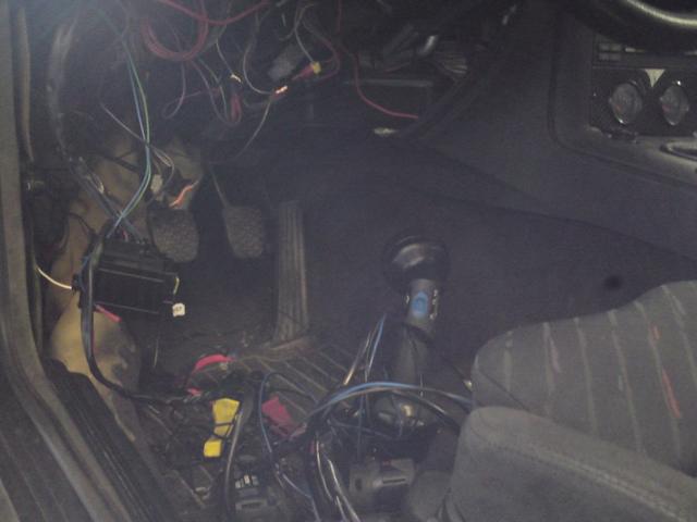 Efter flera timmars slit och i princip urriven inredning kunde jag konstatera att de konstiga kablarna, modulerna mm tillhörde ett handsfree set som suttit i bilen tidigare. Och då ska vi inte tala om mittkonsollen, den var riktigt jobbig. Har inte plockat ihop denna del än för det är tänkt att det ska i short-shift snart.