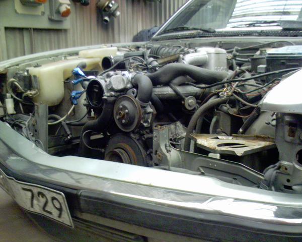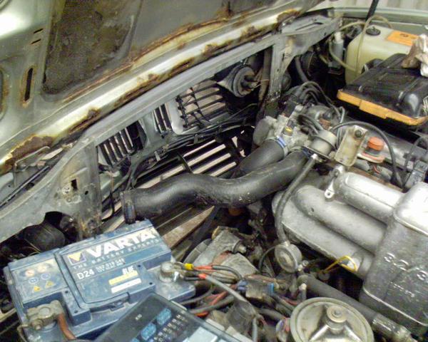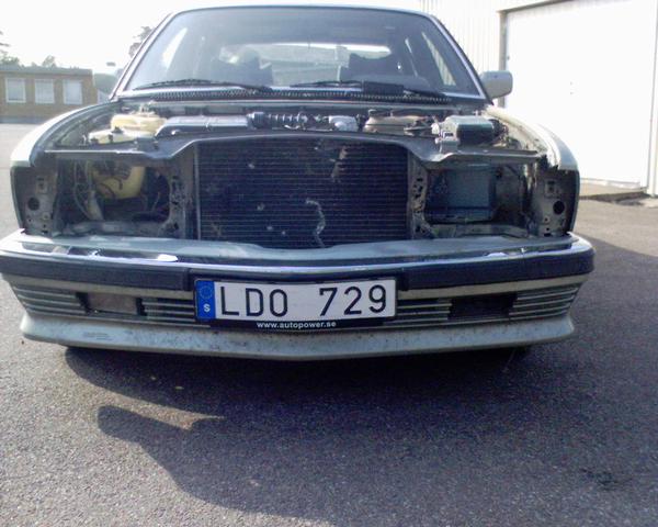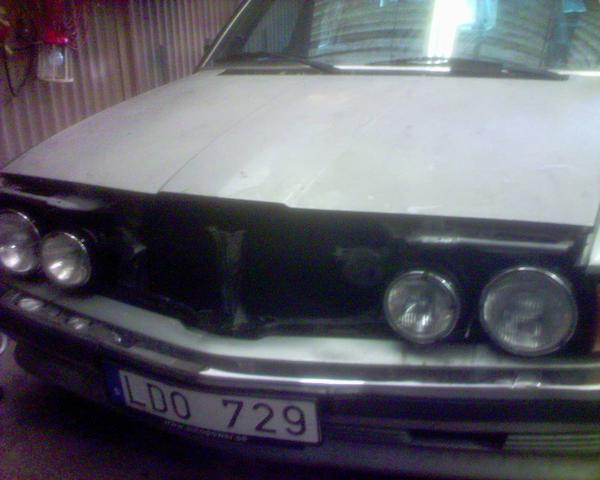 Nu är det snart dags att få ut E23an. Har börjat med att dra bort den till mek-lokalen och svetsat fast "staget" mellan framskärmarna. (bild kommer)