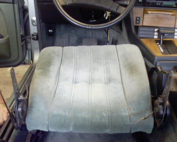 När vi tog ur överdragskläslen i bilen märkte vi att den gav ryggstödet lite stadga. Sä vi fick ta loss ryggstödet och modifiera lite.