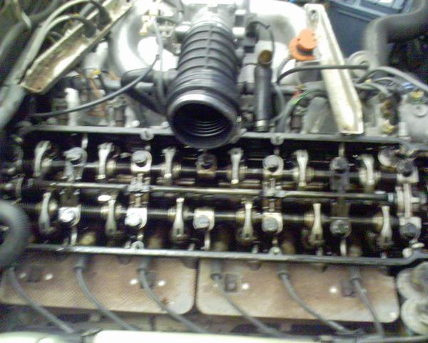 Tog även en bild under ventiljusteringen. Såhär ser det ut under locket på en M30 motor.