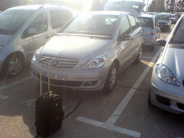 Vi tar morgonplanet till Frankfurt som tar oss snabbt som vanligt till Hahn, och klockan 8.40 är vi nere på marken igen. Vi letar reda på Avis-disken (som har en ny position för varje gång, nästan) och kvitterar ut en Mercedes B150 med 400 mil på mätaren.