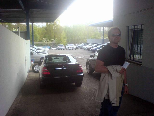 Vi börjar att förhandla om priset på 330:n och förhandlingsläget är lite bättre eftersom vi har €uro att vifta med (bildligt talat alltså). Den får vi ned skapligt i pris och säljaren lovar också att ta ut dörruppslagen. Vi kommer överens. Men då säger säljaren att han inte kan leverera förrän tidigast fredag morgon, eftersom finansbolaget som han belånat bilarna hos sitter på briefet nere i Stuttgart. Fredag låter jobbigt, särskilt som vi har flera bilar som Kent skall titta på längre norrut om han inte hittar någon här nere. Men hur det nu är lyckas Kent övertala honom att skicka en springare till Stuttgart för att hämta briefet på torsdag morgon så att bilen kan exportregistreras och bli klar torsdag förmiddag. Underbart.