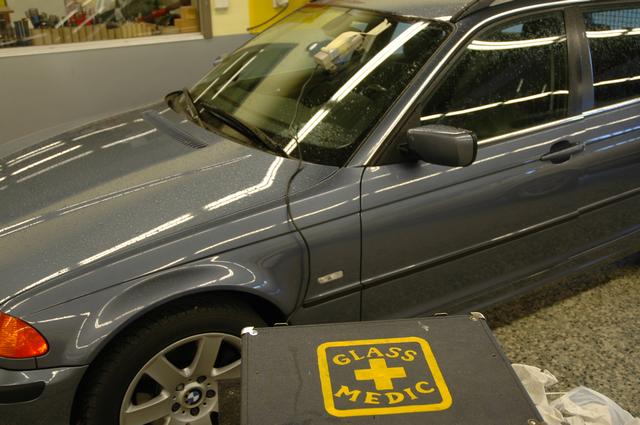 Fick ett pyttelitet stenskott mitt i siktfälet häromdagen. Testade att låta Bäckby Bilglas laga det för att minska risken att det spricker upp så man får betala 1700:- i självrisk för en ny ruta. Det blev väldigt bra faktiskt, klart värt 200:- som var kostnaden för lagning.