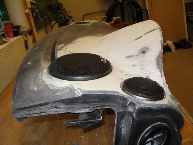 Börjar med kabeldragning i em. Baslådan fortsätter vi med. Instrumentpanelens modifiering ligger planerad till Måndag kväll uppstart med att brusa in elementen med RTA instrument samt ren vinkling till musik för att lyfta fram rätt reflexer. Nu är det jobb dax.
