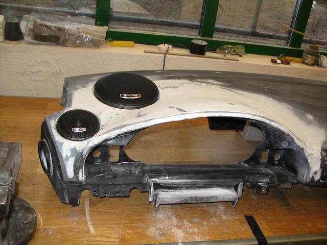 I det initiala skedet så behåller jag airbag på passagerarsidan & gör en preliminär placering av elementen. känns som om det går mycket fortare den här gången att göra jobbet men det beror antagligen på att jag vet hur jag skall göra den här gången samt att jag har mer maskiner till hjälp.