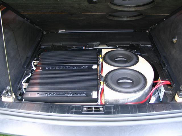 Anläggningen skall vara dold & svart som resten av bilen .Tråkigt ??...-kanske men den föjer det svara temat. Alla ytor skall dock kläs i svart präglad bmw vinyl & alla dragningar skall göras 110%!!