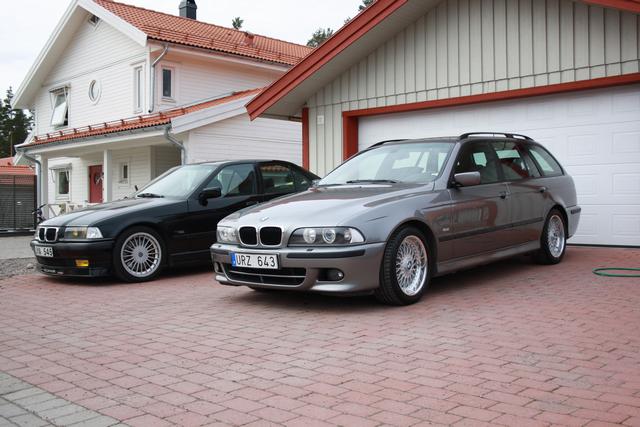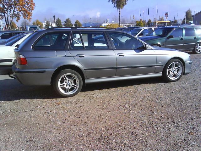 Ja, då blev man ägare till en fin 525iM touring igår! Vi fick vår gamla bil såld i torsdags, eftersom den har varit till salu ett tag så hade jag skaplig koll på bilarna som finns till salu just nu. Min önskemål var en 525 eller 530 helst med M paket i pris klassen 150 till 200 tusen. Såg denna bil på bytbil.com för någon vecka sen hos Sörman bil i Borås och blev väldigt sugen på den. Då det blev klart med försäljningen av Toyotan vi hade innan började jag forska kring historiken, pratade med gamla ägaren som försäkrade att bilen är i fint skick. Jag mailade verkstaden som har servat den och fick bekräftad service historiken. Sen ringde jag den ansvarige säljaren och kom överens om att om jag köper bilen så ska det ingå nya sommardäck då dessa enligt både säljaren och gamla ägaren var slut. Jag blev lovad däck av märket Avon. Vi kom överens om att jag skulle åka ner och titta på den på Fredag, alltså igår.