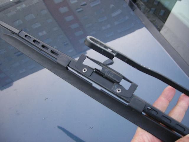 Att montera på torkarbladet på förarsidan var lite knepigare än väntat, p.g.a. den felvända kroken på torkararmen (se tidigare blogginlägg). Men det var inget som man inte snabbt luskade ut.