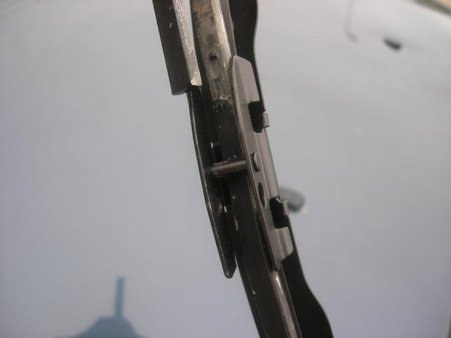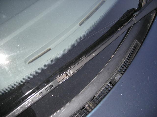 Troligen är torkararmen på förarsidan bytt mot annan modell. Kroken som ska greppa om torkarbladet är felvänt, d.v.s. fästet måste vara av en sådan typ att torkarbladet hamnar vid sidan om armen och inte under armen som det är original.