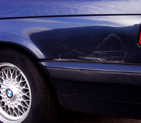 Lacken på Touringen är inte världens bästa, det finns gott om andra skavanker, även om ingen så omfattande som denna, så det känns inte lika hårt som det hade kunnat göra om samma skada hade hänt med en bil man är väldigt rädd om, som t.ex. 523an. Men det är fortfarande väldigt störande.