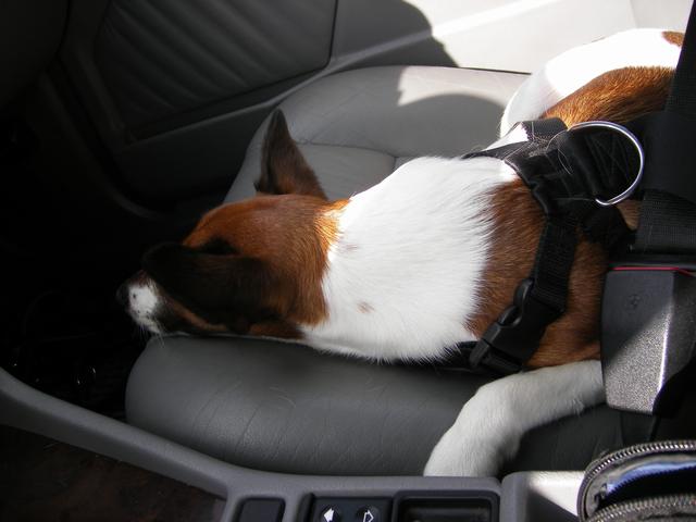 På väg tillbaka lämnar jag av resekamraterna hemma hos sig och får fortsätta de sista 55 milen själv med Buffy, som nu verkar vara något mindre entusiastisk över att behöva åka bil.