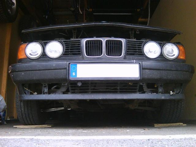 Bakskärmen har jag inte idats göra något åt sedan jag blev påkörd 2009-09-09, men idag blev den underkänd som vass och farlig. Bilden kanske är veckans fulaste E34:a?