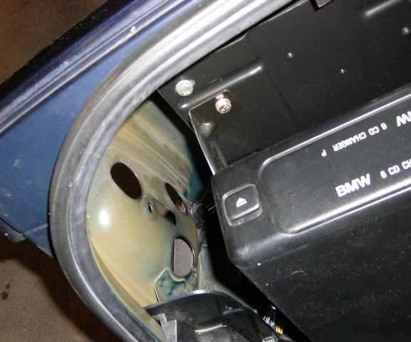 BMW Original trågpackning av nyare modell (metall med gummiklädda kanter) skymtas bakom tråget.