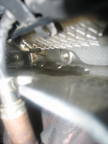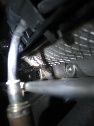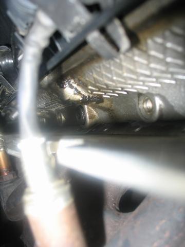 och här ser man att oljan läcker från den nedersta "halvmånen" vidare ner på motordelar