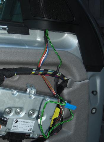 Sladden kopplas sedan direkt in på dörrhögtalaren som ha två ingångar, en för signal och en för diskanten.