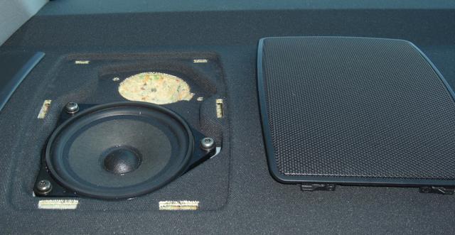 Att byta högtalarna i hatthyllan är en barnlek i jämförelse med dörrarna. Bara att lossa gallret, skruva loss tre skruvar och byt.....