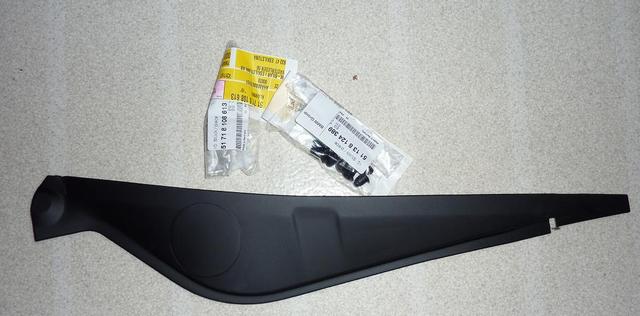På vägen hem passade jag på att passera BMW för att beställa en ny ”vindskiva”, dvs. ett slags plaststycke som sitter under vindrutetorkarfästet. Ett fladdrande ljud uppstod i övre hastighetsregistret och mycket riktigt hade ett fäste gått sönder.