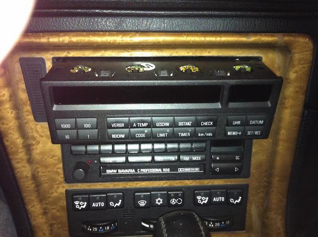 Mittpanelen är åter på plats sedan tidigare, dock utan en CD43. Jag hittade helt enkelt ingen till ett rimligt pris och originalet får därför sitta kvar tills vidare. Det finns flera varianter till salu, men då med ett "M" emblem fastklistrat på fronten. Samma radio finns nämligen i Rover, men då utan BMW-emblem - därav M-tecknet. Men den modellen är jag inte intresserad av.