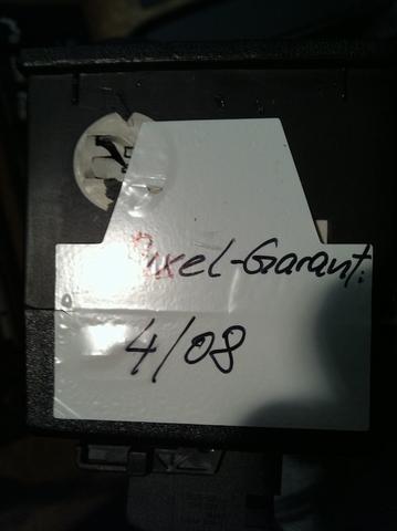 "Pixelgaranti", jo jag tackar. När jag demonterade OBC:n fick jag en överraskning. Någon annan har bevisligen utfört reparationer tidigare, men frågan är när? Det står en hänvisning till 4/08, vilket antingen tyder på att garantin löper ut detta datum eller så utfördes reparationen i april 2008. Det gör det lite knepigare eftersom jag inte vet exakt vad som har gjorts. Jag har ingen lust att skicka OBC:n på reparation om det är någon som har gjort en "sprayreparation". Den reparation som gjort var ju inte mycket att hänga i julgranen. Kanske är det bättre att köpa en ny OBC när man ändå håller på.