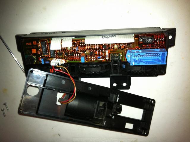 För att få bort klimatdelen måste man skruva bort mittpanelen. Bäst är förstås att ta bort mittpanelen helt, men av lathetsskäl ville jag inte ta bort alla kopplingar. Det blev lite extra pyssligt, men det gick trots allt relativt enkelt.