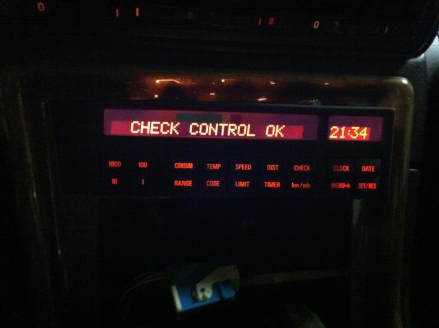 Jodå, det hanns med ett kort besök till garaget i helgen. Passade på att starta upp bilen och rullade även runt lite för att undvika alltför platta däck. OBCn fungerar alldeles utmärkt, som synes, och nu är den dessutom på engelska.
