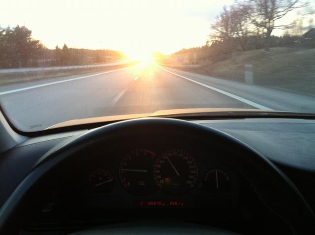 Premiärturen avklarad! I lördags ställde jag på bilen och därefter gick jag ännu en gång igenom vätskor, lufttryck och annat. Därefter bar det iväg på torra vägar med solnedgången som åskådare. Underbart! Fortfarande rullar bilen på 16-tums friktionsdäck, men faktum är att tvåtonspjäsen rullar mjukt och fint med dessa ballonger. Det gäller dock att vara försiktig eftersom de har några år på nacken. De är bara tänkta att fungera som avställningsdäck.