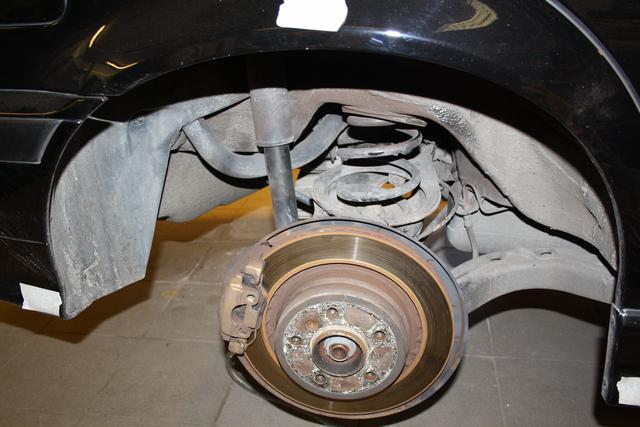 Färdig monterat coilover fram, jag började ana oråd när jag såg avstånds skillnaden mellan skärmkanten och däck!