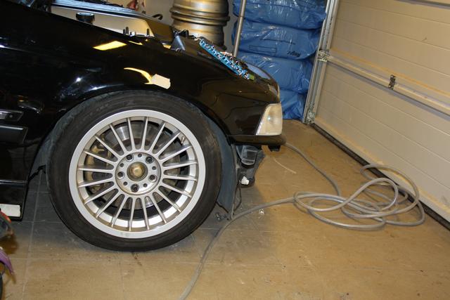 Kunde ju så klart inte låta bli, fick mina coilovers i tisdags och igår vi 24:00 var de monterat och klar! Det var otroligt enkelt att montera de, demontering av fjäderbenen och montering coilover runt om tog ca 1 timme! Det är betydligt enklare och göra detta på E36 än E30 som jag är van vid! Justeringen av höjden tog desto längre tid! Jag hade bestämt mig för att sänka bilen 1 cm runt om men vid monteringen sänktes bilen fram 4 cm och höjdes bak med 2 cm! Snacka om raggar stuk på bilen efter detta! :) Ett par av och på monteringar senare så lyckades jag med och till den höjden jag ville ha! Imorse provkörde jag bilen och är mer än nöjd! Det är svårt att jämför mot innan då jag knappt hann köra bilen innan avställning.