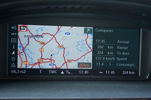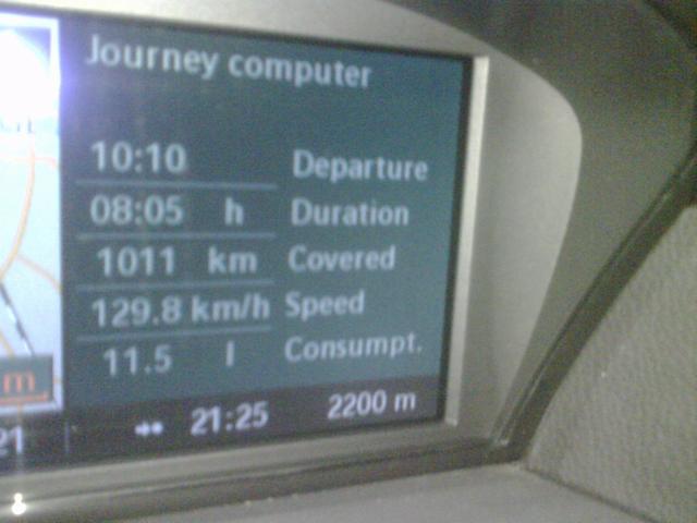 Knappade in Puttgarten i navigatorn och började hemresan. Passade även på att tanka upp innan jag körde på motorvägen. Har inte direkt någon erfarenhet av I-drive så det blev en del letande innan kartan visades på ena delen och färddatorn på andra. Körde sedan 3 timmar och han då avverka dryga 40 mil av de nästan 100 mil jag hade att köra. Snitt på 137km/h var rätt ok med tanke på att det var en hel del vägarbeten på vägen. Bilen går som ett lokomotiv och farthållare på 170 känns i princip som att ligga i 110 med vilken annan bil som helst. Man blir lätt fartblind...