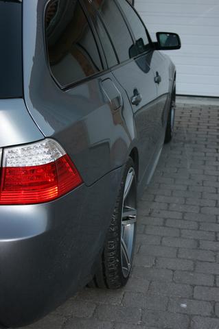 Bad honom även att få en transparent skyddsfilm (folie) monterad på bakre stötfångarens ovansida för att ge lite extra skydd när man lastar i och ur. Att ha denna del lackerad är ganska idiotiskt och även om man är försiktig så lär man ju förr eller senare ändå repa den. På E39:an var det svart plast där och är betydligt tåligare.