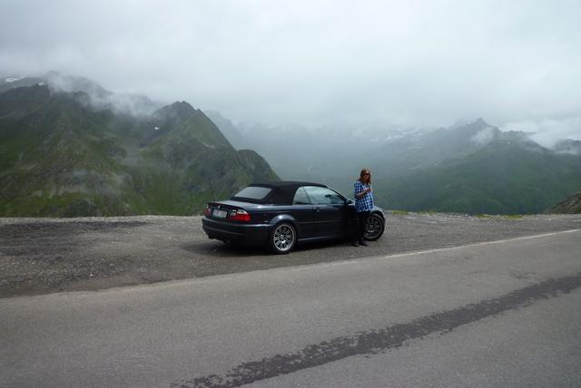 Vädret var fortsatt instabilt så taket fick vara uppe, men det gjorde inte så mycket när vi kom upp i Tyrolen och körde den helt fantastiskt vackra panoramavägen över Timmelsjoch! Knappt någon trafik - och framförallt inga självmordsbenägna cyklister som störde framfarten. Detta var utan tvekan den roligaste bilkörning jag någonsin varit med om! På Italienska sidan av Alperna stannade vi i den pittoreska byn Tirol för att äta lunch, och nu hade även vädret skärpt till sig så att man kunde sitta ute. Eftermiddagen tillbringades mestadels på Autostradan, med en mindre trevlig trafikstockning utanför Florens som försenade oss med en timme. Dagens roligaste och typiskt Italienska incident inträffade kort därefter.