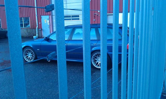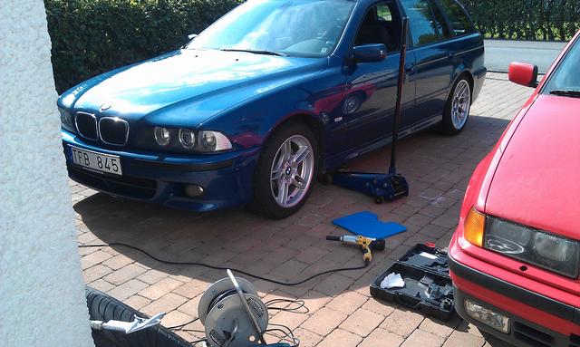 Efter inrådan från Wölkes lät jag BBS-fälgarna sitta kvar. Då jag inte hade några som helst planer på bilbyte just nu, så känns det hela lite märkligt. Hoppas på ett generöst bud, då utbudet av svensksålda bilar med M-paket och full servicebok som gått under 20000 mil är minst sagt begränsat...