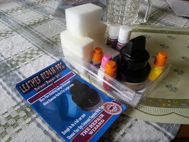 Hittade färganpassad Läderfix på Ebay i England för 150 kr ink frakt. även Leathermaster skinnrengörning beställdes från Prorecond.