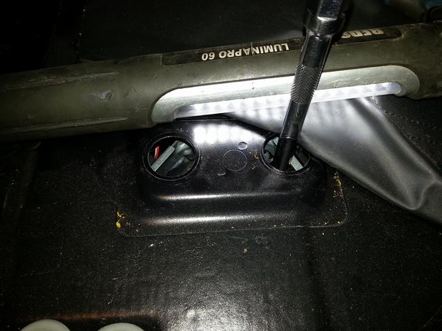 Såg några grå pluggar underifrån och tänkte till lite. När man ställde cabben i halvläge så fanns de i cabbutrymmet och där under är övre bultarna till stötdämparna. Hmm då så slipper man kanske krypa ned i skuffen som en packad sill å ringa Poolia för att komma därifrån.