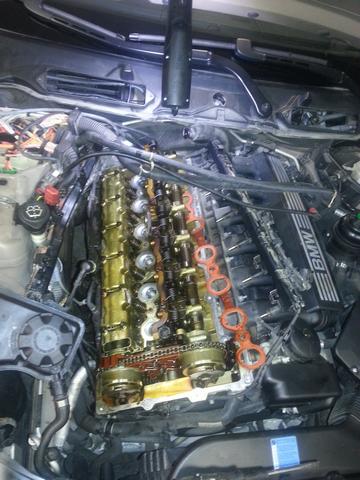 4 timmar senare var det ihopskruvat igen. Lite knöligare att byta än på M52/M54. Dock är kåpan av aluminium och packningen är en tunn "plåt" packning.