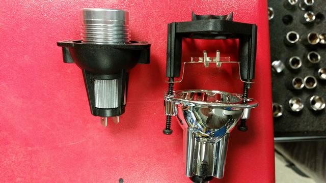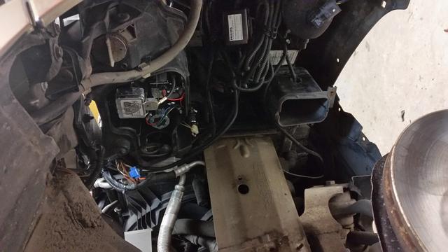 Sedan kan jag tillägga att ska H7 lampan till helljuset bytas. Vicka den förlängda armen uppåt då släpper lampan i nederkant och går att dra ut, rätt vettigt istället för alla vridningar.