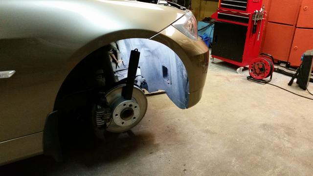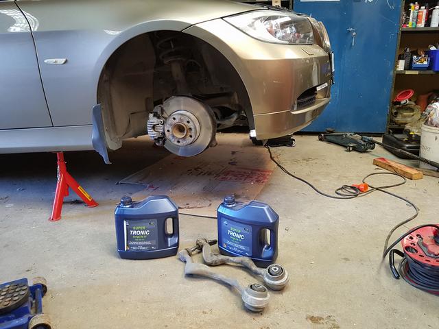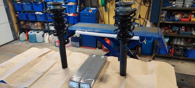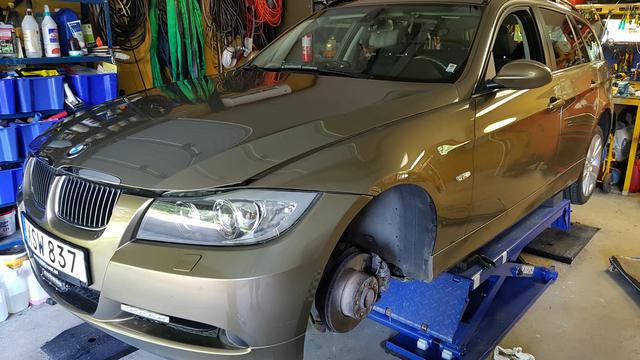 Ny fjädring fram till 325an ihopplockad dags för nya grejer efter 19.000 mil. Nu ska det bara skiftas på bilen får bli en annan dag.