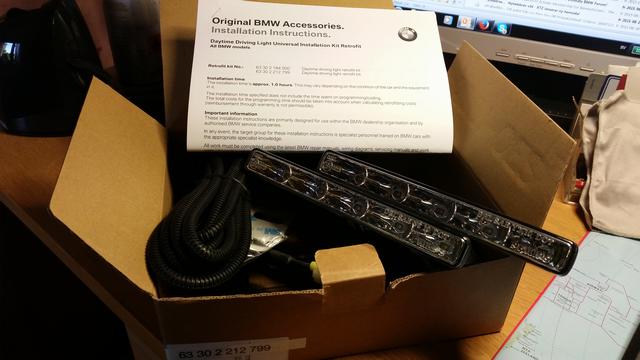 Från en tysk BMW återförsäljare Vögl. Ebayades in en Original DRL-sats för under tusenlappen får väl ses som ett fynd.