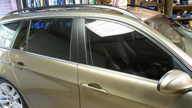 Nåja har nog norra Europas renast sidofönster efter att ha acetontvättat bort allt klister när filmen värmts bort med pistol. Dessutom ser jag bra ut också, sikten genom glaset blev osså bättre.