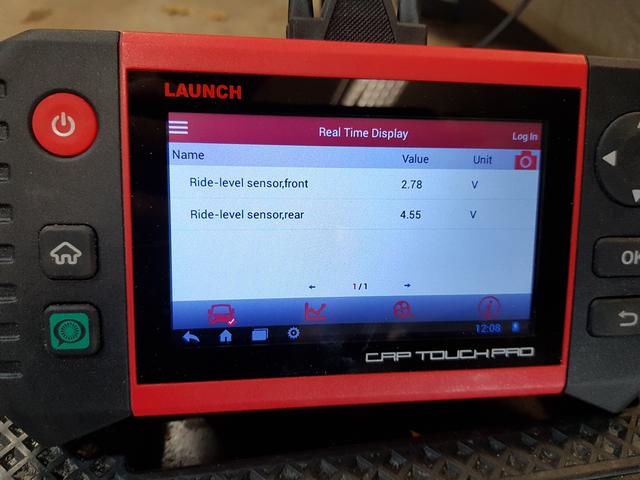 Haft en felkod på bakre nivåsensorn under längre tid. Kontakten såg dålig ut och fick felaktiga signalnivå från sensorn som jag böt för ett par år sedan. Köpte en ny givare på ebay och ny kontakt och kablar på Mbilar. När jag skulle rota fram kablaget under innerskärmen för att skarva så upptäckte jag att den var sönderskavd mot innerskärmen vilket var det verkliga felet. Bara att skarva in nytt kablage och testa innan man monterade . Nu ser signalen helt ok ut.