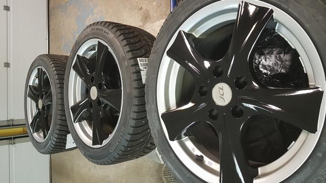En del lacksläpp och krackeleringar på vinterfälgarna så beslöt jag att ändra lite på designen för att få det se trevligare ut. Nya Kumho wintercraft är redan monterade.